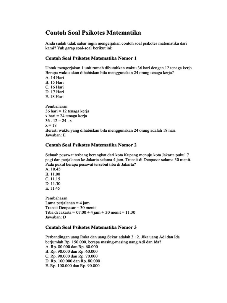 Contoh Psikotes Matematika : 8 Jenis Soal Psikotes Yang Sering Digunakan Dalam Rekrutmen : Agar ketika mengerjakannya anda akan lebih mudah.